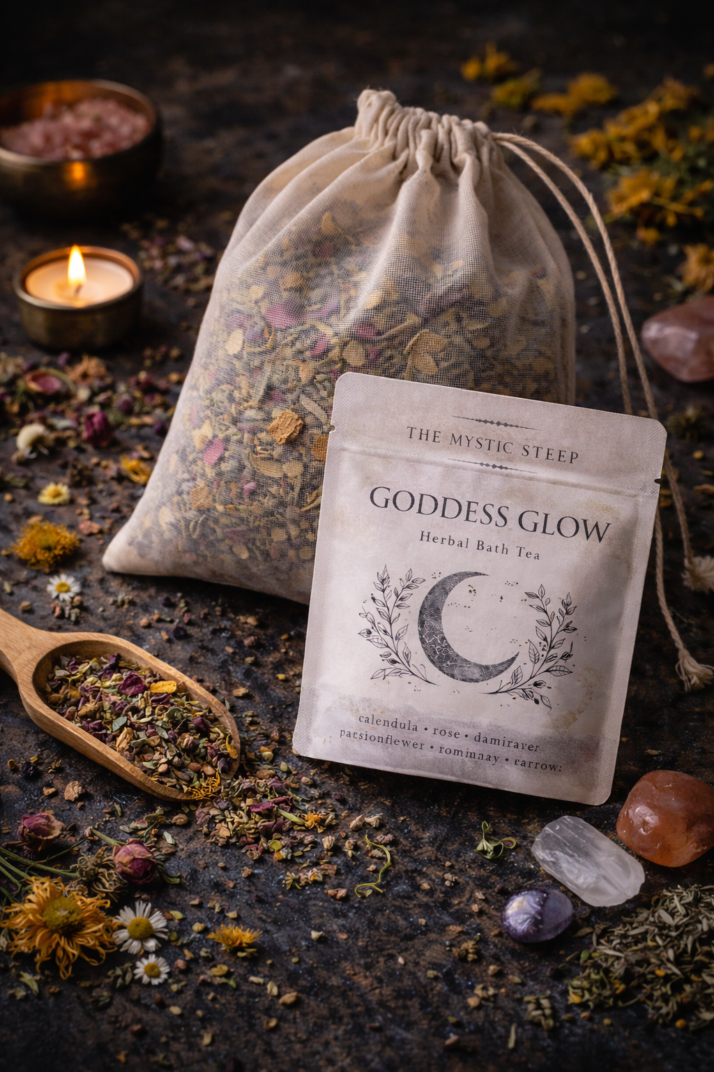 This bath tea is ideal for intentional self-love rituals, special evenings, or anytime you want to feel nurtured and luminous. Let the warmth of the water and botanicals invite presence and pleasure.